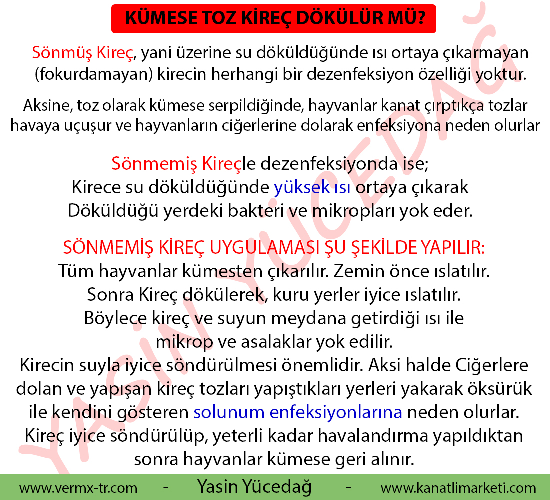 YOUTUBE VİDEOMUZ İÇİN TIKLAYINIZ – KÜMESTE TOZ KİREÇ KULLANILIR MI?